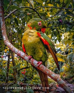 Parmi les nombreux oiseaux de l’Amazonie peuvent être observés plusieurs types de psittaciformes, comprenant les perruches et les perroquets comme le grand ara rouge, par exemple.