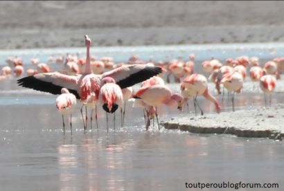 On peut l’observer les pieds dans l’eau des lacs salés de haute altitude (3 000 - 4 800 m) comme dans les salinas d’Arequipa.