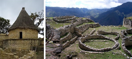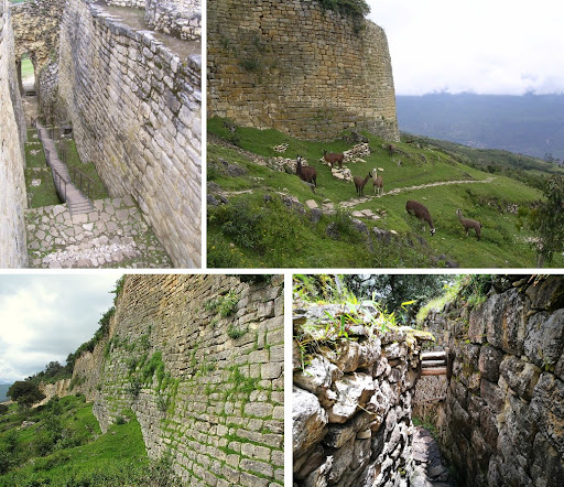 Des murs impressionnants de 20 mètres de haut entourent une ville de plus de 420 maisons rondes typiques des Chachapoyas, donc antérieures à l’Empire inca. La citadelle ne possède que 3 entrées lesquelles sont faites de couloirs étroits où on passe à peine à 2 personnes. Excellent moyen de refroidir toute tentative d’invasion extérieure.