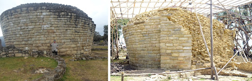 La hauteur des murs et des édifices pourrait s’expliquer par les rites funéraires des Chachapoyas. Effectivement, lorsqu’un ancien mourrait, ils le mettaient dans un sac en position fœtale pour le rendre à la Pachamama, on lui ajoutait des céramiques et du tissu, mais aucun artefact d’or ou d’argent de la civilisation inca. Le sac était enterré dans un trou creusé dans la maison, et on reconstruisait une nouvelle maison par-dessus.
